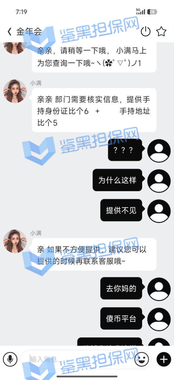 2、鉴黑担保网维权专员联系该平台相关负责人核实情况,对方无法说明让其提供这些资料的原因,也无法说清楚对方是否存在异常投注行为等原因,只是一味要求必须提供这些相关信息进行审核,存在刁难用户的恶劣行为,且该会员提款金额较大,故盈利金额也较大,这是平台不愿出款的借口,且沟通过程中态度恶劣,可判定为黑平台!!