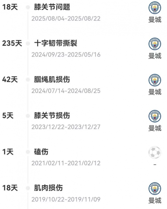 2024/25赛季初,罗德里遭遇膝盖前十字韧带撕裂(ACL)的重伤,休战235天。以金球先生的受伤为转折点,曼城褪去了“七年六冠”时期的光环,提前进入了重建期。