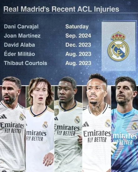 皇马成为ACL伤病的重灾区。
