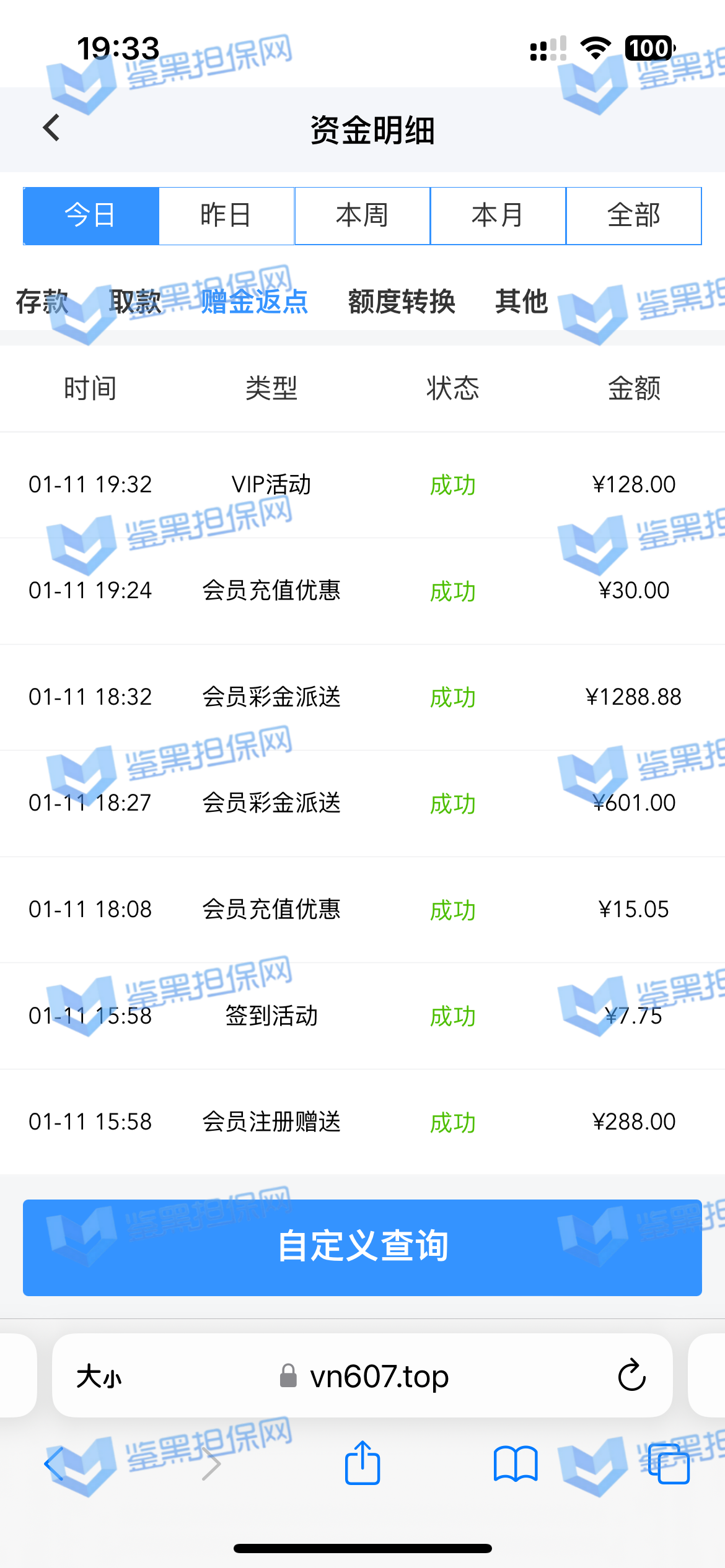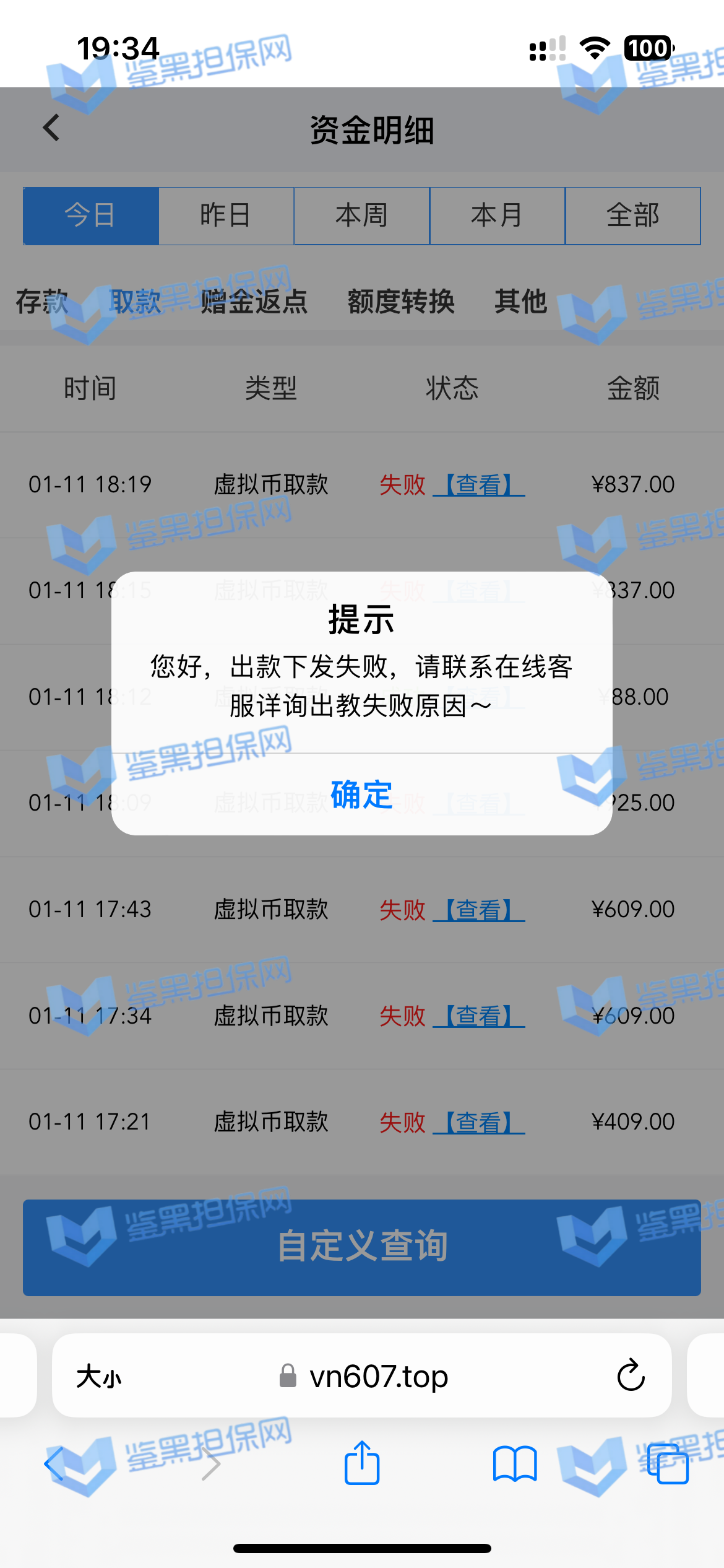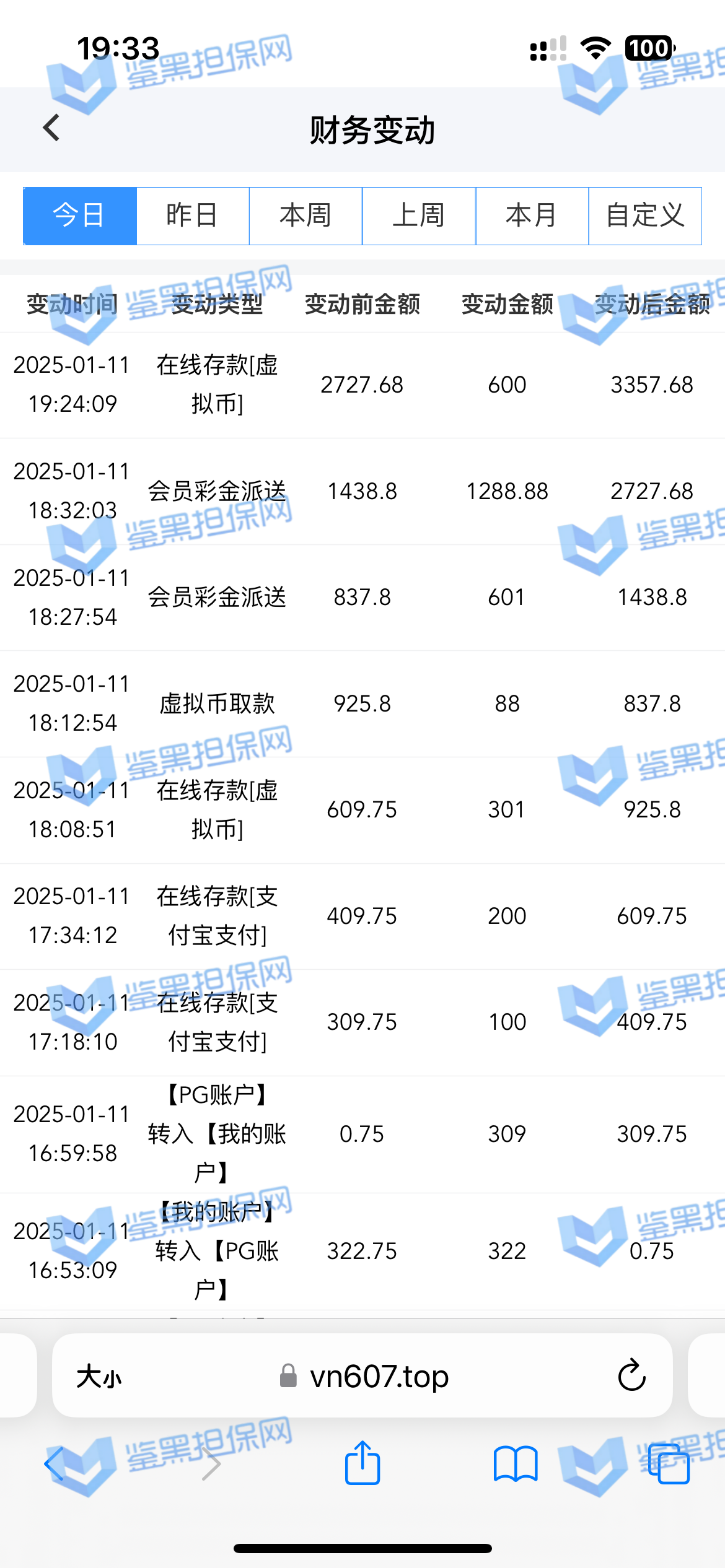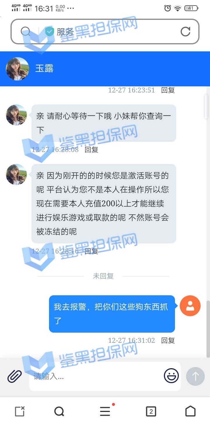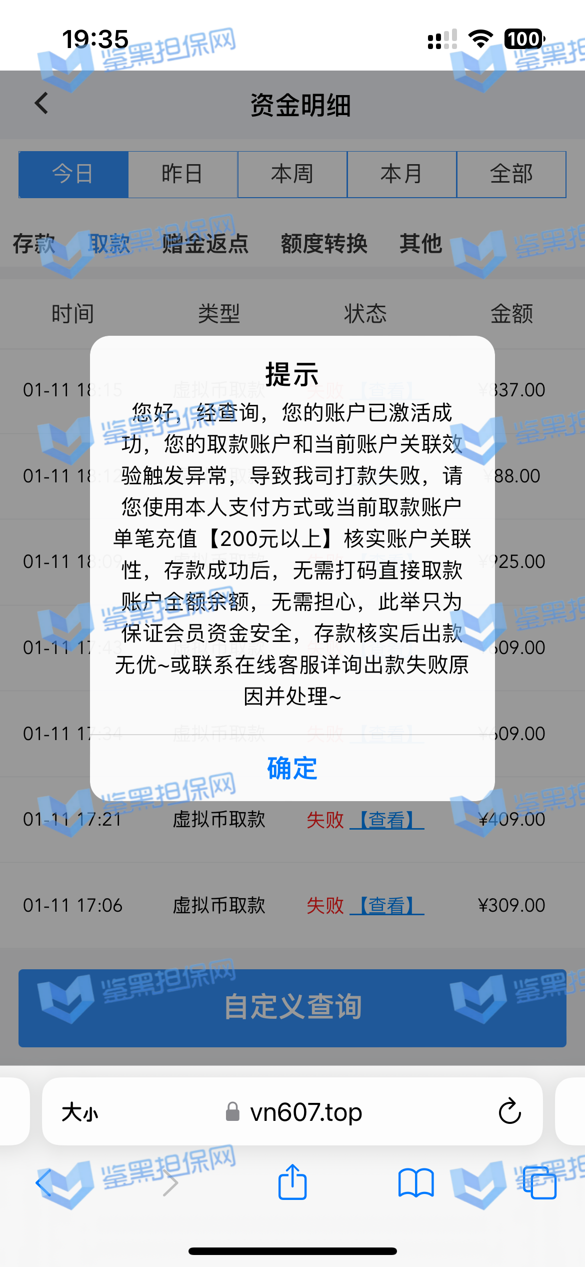 2025年1月23日下午我接到他们客服的电话邀请注册,说最高可以领288的彩金,我觉得这个平台不错挺大气的,就充了500元试试水。 因为他们平台我看是要求一倍流水提现,所以我就打到1300元申请了第一次提现,结果失败了,他们客服说让我打注册彩金288的5倍1440元才能提款,我就去他们指定的PG电子去打流水,当天晚上打够流水以后找他们提款再次失败,又改口说要打够提现余额的1300*5倍=6500元的流水才能提现。从第二次给我退回来以后他们给我后台修改了PG电子的赔率,损失从15%提高到50%,我一算账根本不够,然后我就又去打了百家乐,想着输完就不提,赢了就去刷流水,也是运气好,从1300元梭哈到5000多元,回来刷了一晚上的PG电子,一直到1月24日的中午,才刷够流水。1月23日刷了2000多流水亏了300多,差不多15%的亏损,第二天刷了4000多亏损超过2300元,我也没说什么,想着打够就提现吧。然后1月24日我去申请提现,客服先给我提了个88元,然后再提的时候以不足vip1为由让我继续充值700元到vip1,我又充了700,然后又去申请提现,提现后又给我拒绝了,说要我再充值1000元才能使用钱包收款,这回已经引起我的警觉了,我就和他们客服再三确认,这回充1000一定没问题了吧!他们客服拍着胸脯说百分之百一定能提现,给我保证,我就又充了一千。冲进去以后我申请提现又失败了,理由是资金风控让我再充值余额一半的钱也就是4000多元解除风控(我的资金是工资卡没有任何问题),他们客服就变成了复读机,一直让我继续充值,我说什么都没用,我说刚才不是百分之百能提现成功吗?他们也不理我,说这次百分之百能提成功。所以他们平台是输了钱算我倒霉,赢了钱就开始连环套路骗钱的骗子平台 以下是我经过技术手段查到的该平台的所有域名(我本人是计算机科班出身) 威尼斯人: wn88.vip vn600.top vn601.top vn602.top vn603.top vn604.top vn605.top vn606.top vn607.top vn608.top vn609.top vn610.top wn880.top wn881.top wn882.top wn883.top wn884.top wn885.top wn886.top wn887.top wn888.top wn889.top wn890.top wn891.top wn892.top wn893.top wn894.top wn895.top wn896.top wn897.top wn898.top wn899.top vn4456.com vn4457.com 81157.cc 元大娱乐城(同一个主体运营的另一家平台): yd7575.com yd9568.com yd3637.com yd3690.com yd5748.com yd9928.com yd3657.com yd2234.com yd1238.com yd1239.com yd1237.com yd2235.com yd1230.com yd1236.com yd1235.com