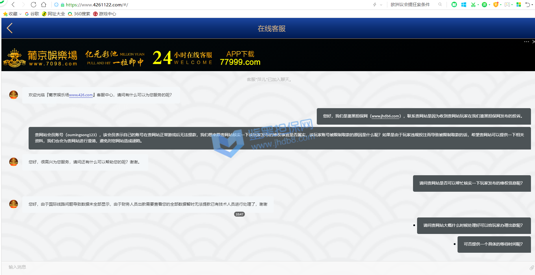 鉴黑担保网投诉处理流程说明