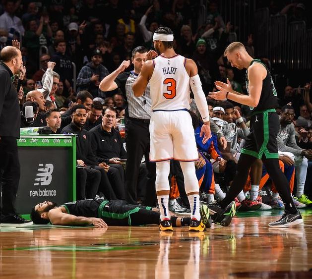 主场面对尼克斯,凯尔特人进攻三叉戟布朗、塔图姆和波尔津吉斯又是联袂出击。双方上半场打得难解难分,尼克斯开局21-16领先,布朗突破上篮得手,凯尔特人掀起反扑高潮,一波9-3,第一节完成了反超。
